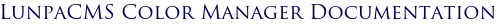 Color Manager starts you out with a default palette, which LunpaCMS uses automatically on various website elements. The palette is organized alphabetically by Color Description, which are simple shortcuts to automating the website color scheme. So, instead of memorizing which Hex Color Code needs to be used with a particular element, you only need to create a Color Description such as "soylent_green" and implement it for the element by using the code :::color_soylent_green:::.
